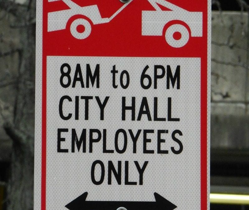 Quincy City Hall’s well-plowed employee and suspected VIP free commuter parking spaces appears to have been trashed by at least one irate local.