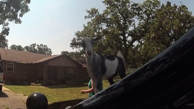 In particular, the goat had fun repeatedly climbing onto the hood of a police cruiser.