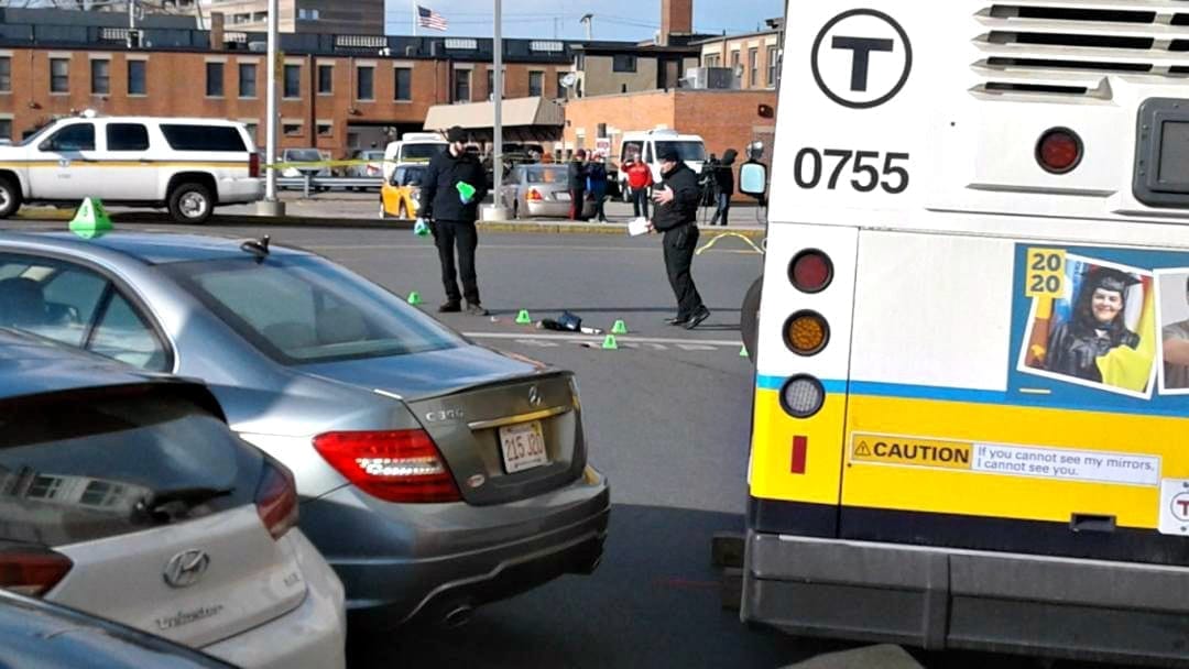 And on the other side of the bus, MBTA Transit Police were spotted next to number-identified items on the ground which in turn suggested that someone on foot had been struck where a pedestrian should not be.