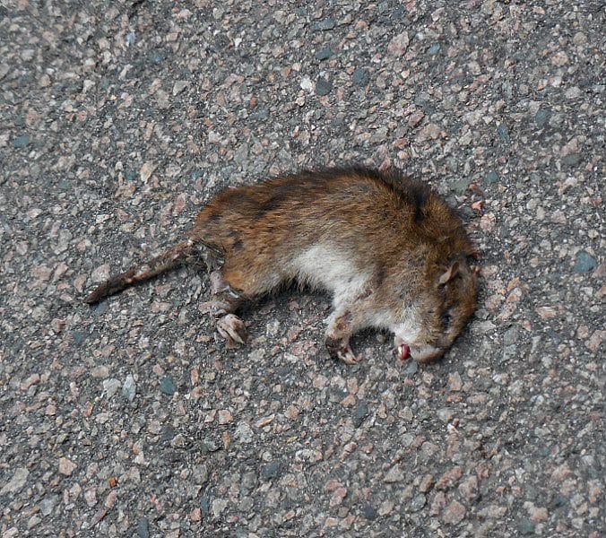 Although there were no obvious signs of foul play nor was this rat roadkill, one can only reasonably assume that it did not die of natural causes.