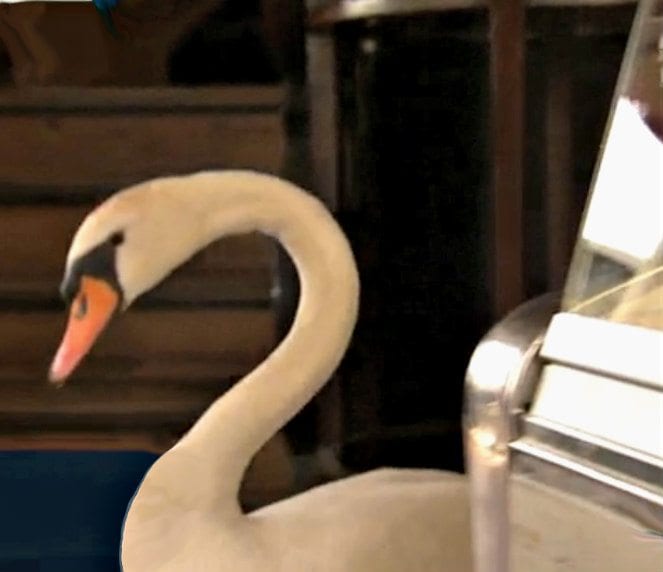 Apparently, the swan has pretty much taken up residence at a local restaurant.