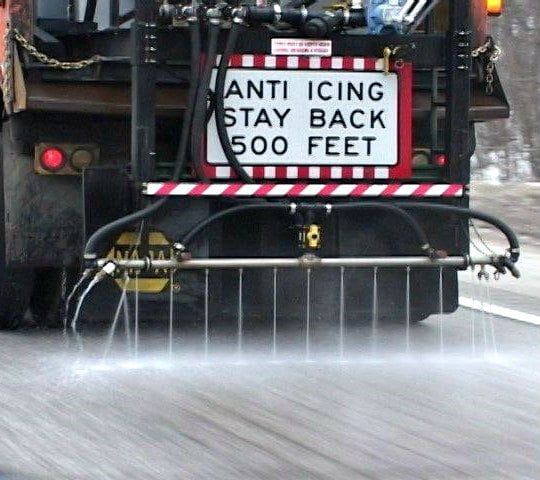 Also of importance is that brine should applied as close to the start of a snow event as possible so that it is not blown off the road by passing vehicles.