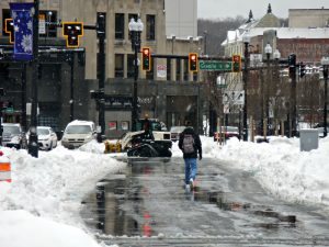 Elsewhere, however, the city sidewalks along the library were in white out and dangerous condition.
