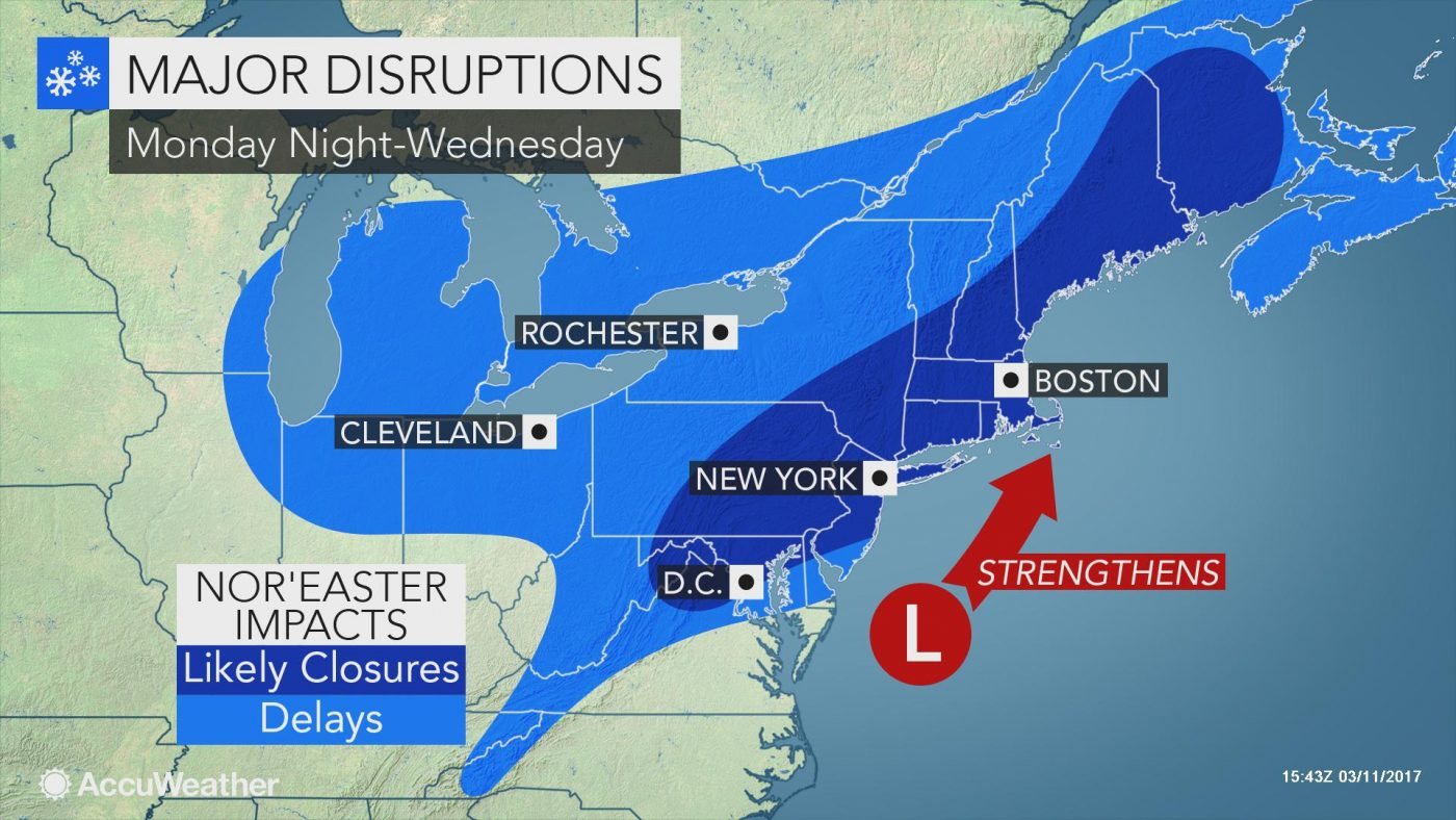 The still evolving forecast is predicting a potentially major disruption courtesy of heavy snow and strong winds from Washington DC to Boston as well as points even further to the northeast.