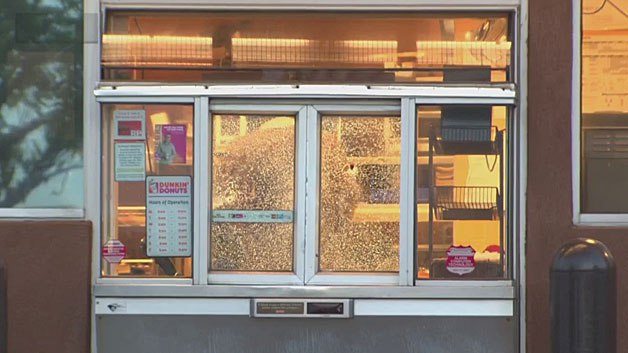 Follow up reports indicate that the shooter was probably packing a BB pistol as well as that the crew at this Dunkie were able to take down the license plate of the shooter’s vehicle. That and probably also have the incident recorded on video.
