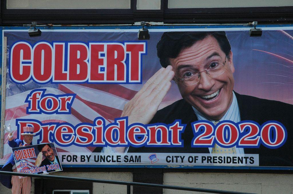 Quincy’s Uncle Sam campaigns for Stephen Colbert for President in 2020!