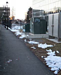 While out and about on the increasingly mean streets and walkways of Quincy, intrepid Quincy Quarry News personnel happened up a pile of needles piled up behind Quincy’s City Hall today.