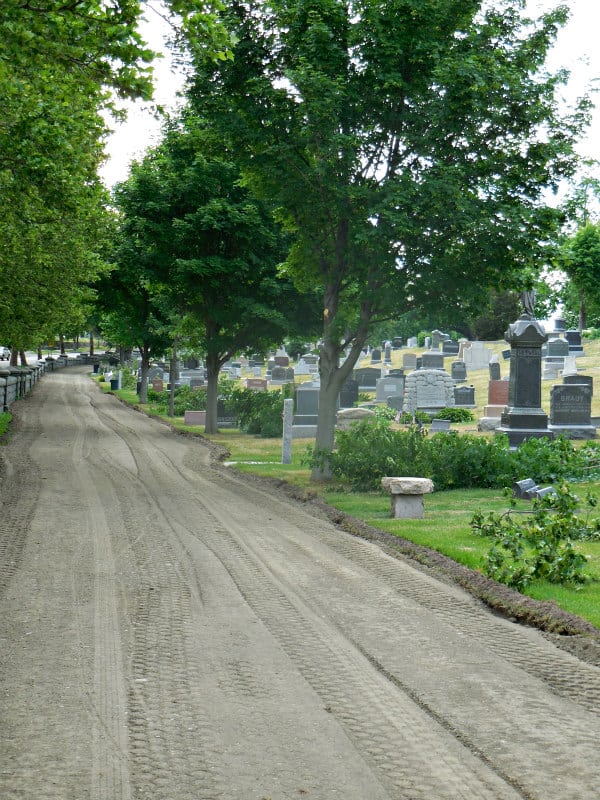 Courtesy of a dime dropped its way, Quincy Quarry exclusively photo-documented the chainsaw carnage of trees and concomitant desecration of graves recently committed throughout Quincy’s historic Mount Wollaston cemetery.
