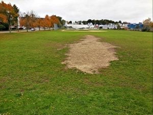 Also remaining to be seen is at least merely but a reseeding, much less a comprehensive, of sports fields around time.