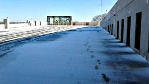 Fortunately for a change, things worked out to be a good thing as the top and open air level of the new garage was not cleared of snow after recent snow events, thus rendering roughly a hundred parking spaces into basically a hockey rink.