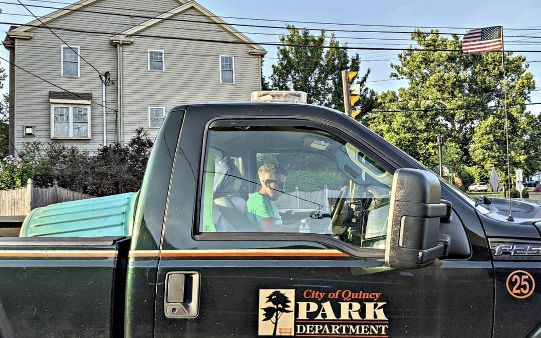 Yet again, Quincy Quarry exposés dangerous shortcomings within the operations of the Koch Machine. Care of one of Quincy Quarry’s ever-growing cadre of Citizen Photojournalists comes a photograph of a City of Quincy Department of Natural Resources, (née Park and Recreation Department) employee looking to be texting while driving or perhaps gaming on the already ever-increasingly mean and dangerous streets of Quincy.