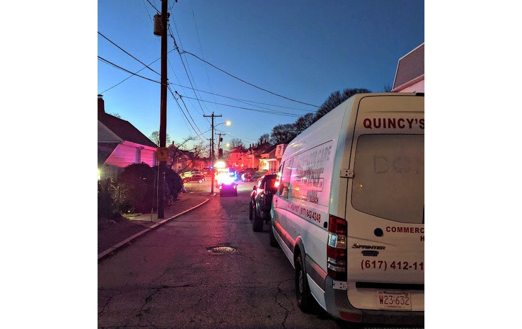 At least a handful of Quincy Police cruisers, the Quincy Fire Department’s Rescue One firetruck complete with eight firefighters in full turnout gear, at least two Brewster Ambulances, and what appeared to be a Crime Scene Investigation van both clogged and blocked the street from shortly after the lunchtime until after sunset.