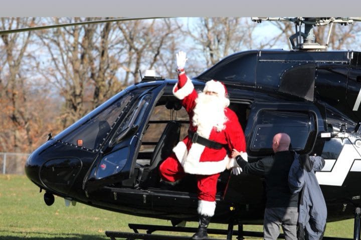 Santa Claus flies to rather than parachutes onto Pageant Field this year.