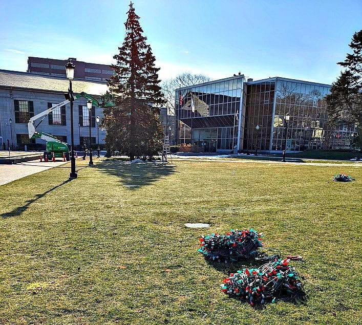 And for further proof of same, the two cut Christmas trees and thus but temporariy set up adjacent to Quincy’s two city halls are still standing.