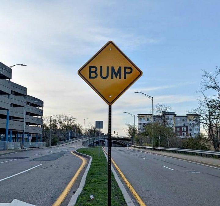 While finally taking out the bump would be the better way to go, a warning sign would still be a good idea; if that is, such signage was put in the right places.