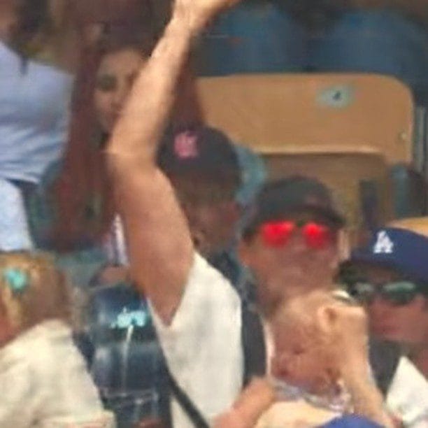 To whit, at Los Dodgers game over the weekend just past, a father packing his progeny in a baby carrier proved that Dads can multitask.