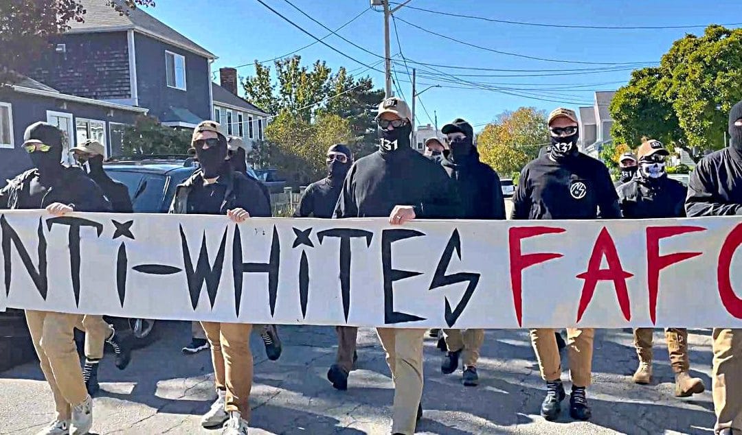 On a muggy late summer Saturday night, members of the designated by the ADL and others as a neo-nazi hate group NSC-131 returned to Quincy last night to protest the recently opened migrant center on the campus of Eastern Nazarene College.