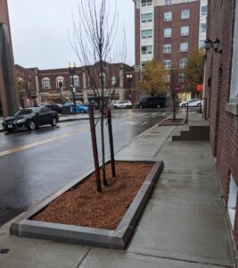 On the bright side, roughly eighteen months after a couple of granite-bordered planters were built along Saville Avenue opposite Presidents Place trees were finally planted within the planters even though ground cover plants were not also planted even if such was done in all of the other similar planters nearby.