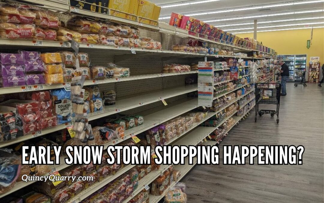 While out and about shopping on Thursday for supplies and especially adult libations for the Quincy Quarry news crew members assigned to cover this weekend’s storm, the Quarry’s latest student intern noticed considerably more shoppers and longer checkout lines then usual yesterday morning.