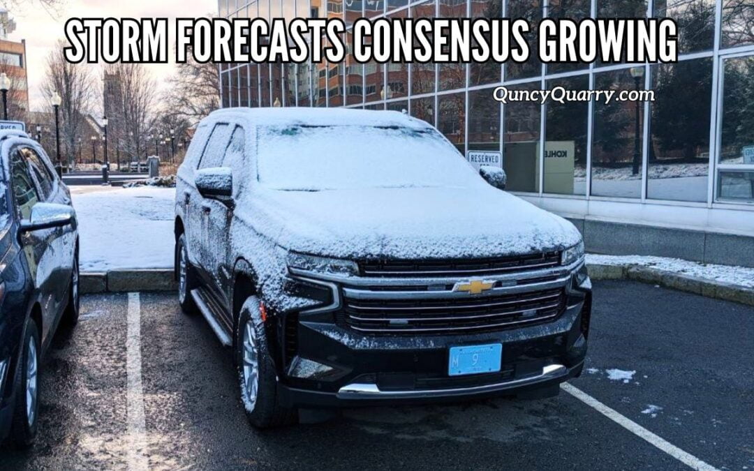 As the impending nor’easter approaches, various official, news media, and others’ forecasts are steadily moving towards a consensus.