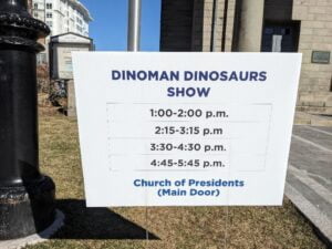 Presidents Day activities that inexplicably included multiple performances of a dinosaur show inside of the Church of the Presidents, multiple Birds of Prey presentations in Old City Hall as well as a concert by a U2 tribute band in a tent, among other non-presidential sorts of activities.