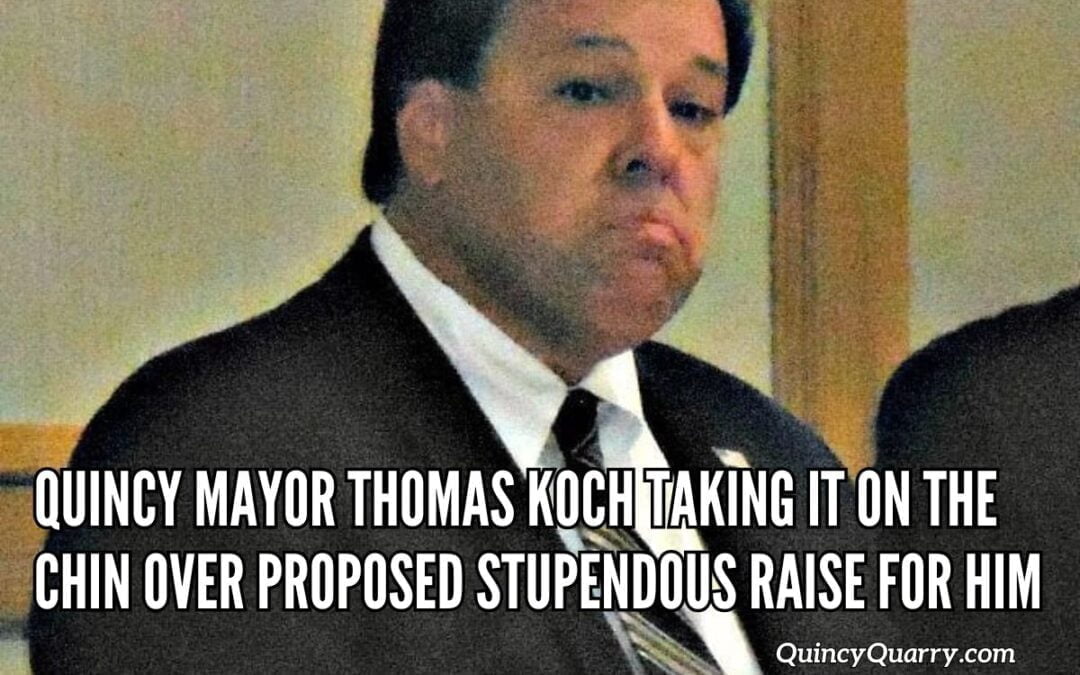 A presentation at this past Monday’s City Council meeting recommended at least a 90% raise to as much as a 136% raise for Quincy Mayor Thomas P. Koch has not only raised mostly unfavorable to outright brutal coverage from local media, even regional print and television news outlets have piled on with often pointed coverage as opposed to their traditional rare instances of covering any news about Quincy.