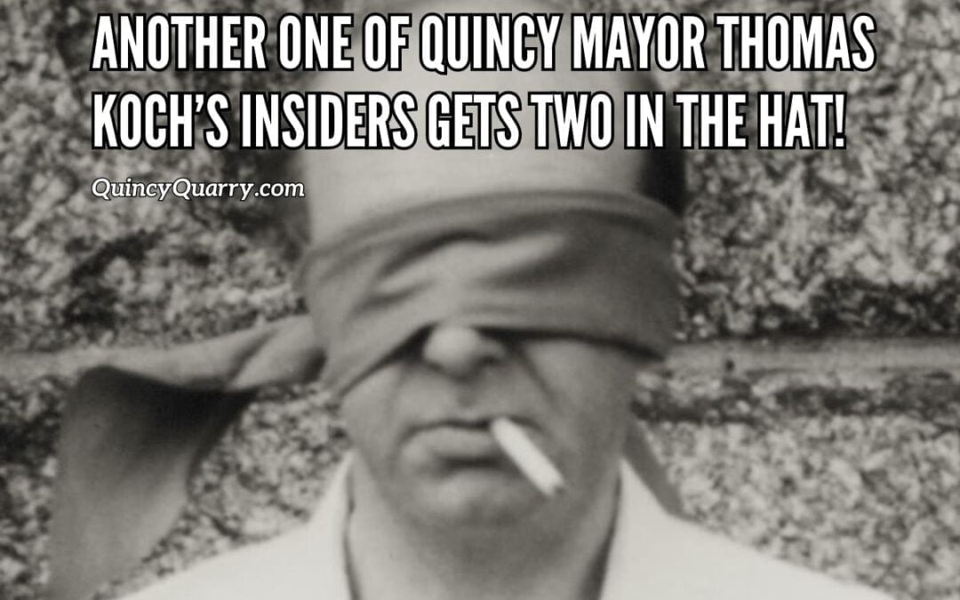 The gift that keeps on giving! Yet another one of Mayor Thomas Koch’s insiders gets “two in the hat.” It’s like watching a never-ending episode of “House of Cards,” but with less subtlety and more local flavor. One must admire the mayor’s dedication to surrounding himself with such trustworthy and upstanding individuals. It’s almost as if cronyism and backroom deals are prerequisites for his inner circle. Maybe instead of focusing on his pay raise, Mayor Koch should consider investing in some drama lessons for his team – at least then, their antics would be entertaining on purpose. Bravo, Quincy! You never fail to amaze.