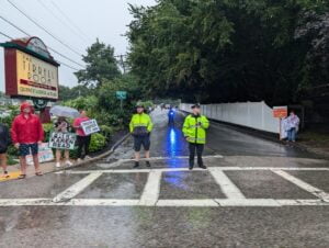 A late afternoon thunderstorm rain yesterday and a police presence did not stop a sizeable throng of Free Karen Read supporters from turning out to picket Norfolk District Attorney Michael “Meatball” Morrissey’s annual summer campaign fund fundraiser and thus pretty much a mandatory attendance event by at least Norfolk County hacks as well as others who variously dine at the public trough and/or are grateful for past and much appreciated consideration..
