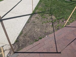 Conversely, the long and often wasteful history of spreading of seed and resodding given this design and maintenance flaw problem adds up to real money, especially when cutting back on irrigating, laying down a few square feet of pavement and/or using a simple product such as a green one of the following design that blends in nicely within grass while at the same keeps pedestrians from fatally crushing grass could readily solve the problem once and for all as well as for short money.