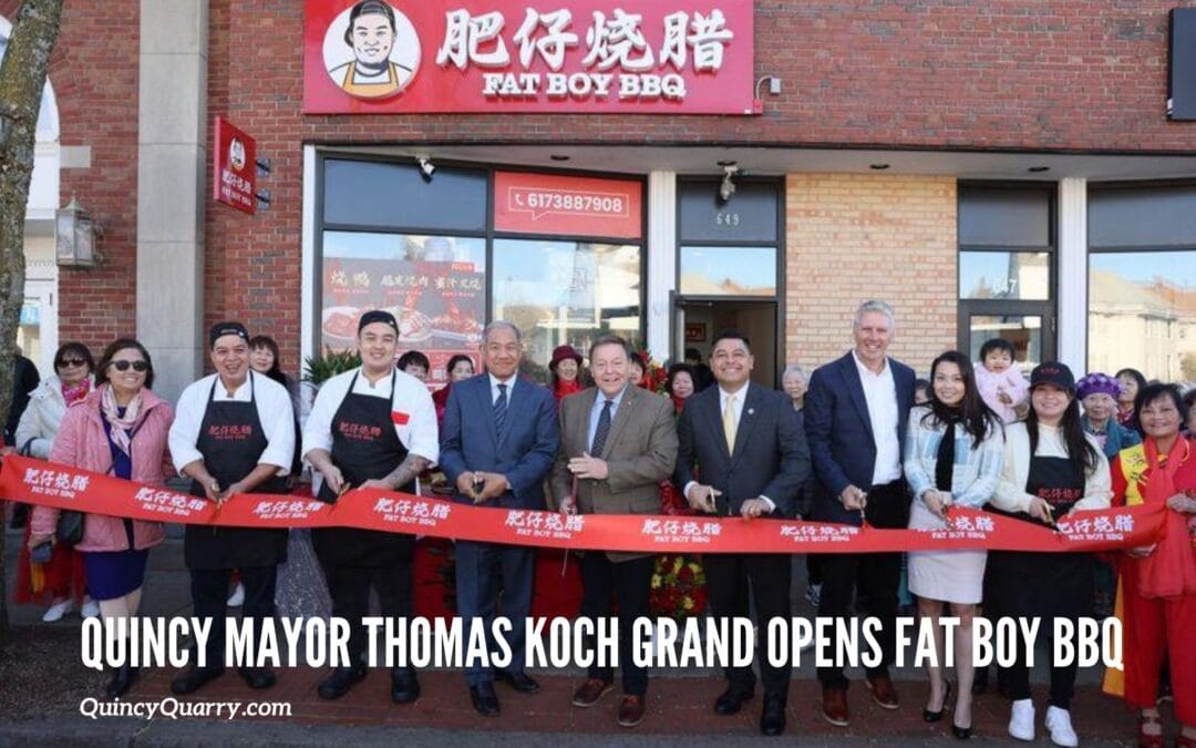 In the Quincy Quarry News newsroom as well as by others they all found to be most amusing, Quincy Mayor Thomas P. Koch was front and center cutting the ribbon for the grand opening of Fat Boy BBQ near the intersection of Beale and Hancock streets in Wollaston Center.