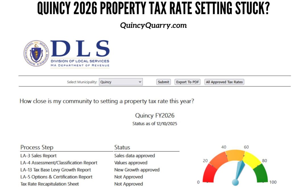 This past Monday’s Quincy City Council meeting of mostly lame duck city councillors was the first time ever that the usual single meeting approval of what needs to be done to approve property tax rates is going to be done over at least two city council meetings.