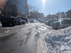 City Hall VIP parking lot cleared to pavement as well as from curb to curb