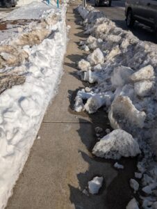 Granted, while there was some spillover of small frozen clumps of snow onto 18’s sidewalks likely from road clearing efforts, almost two weeks ago its sidewalks were cleared down to the pavement and so providing a ready pathway for pedestrians even if here and there perhaps not sufficiently cleared for someone in a wheelchair.