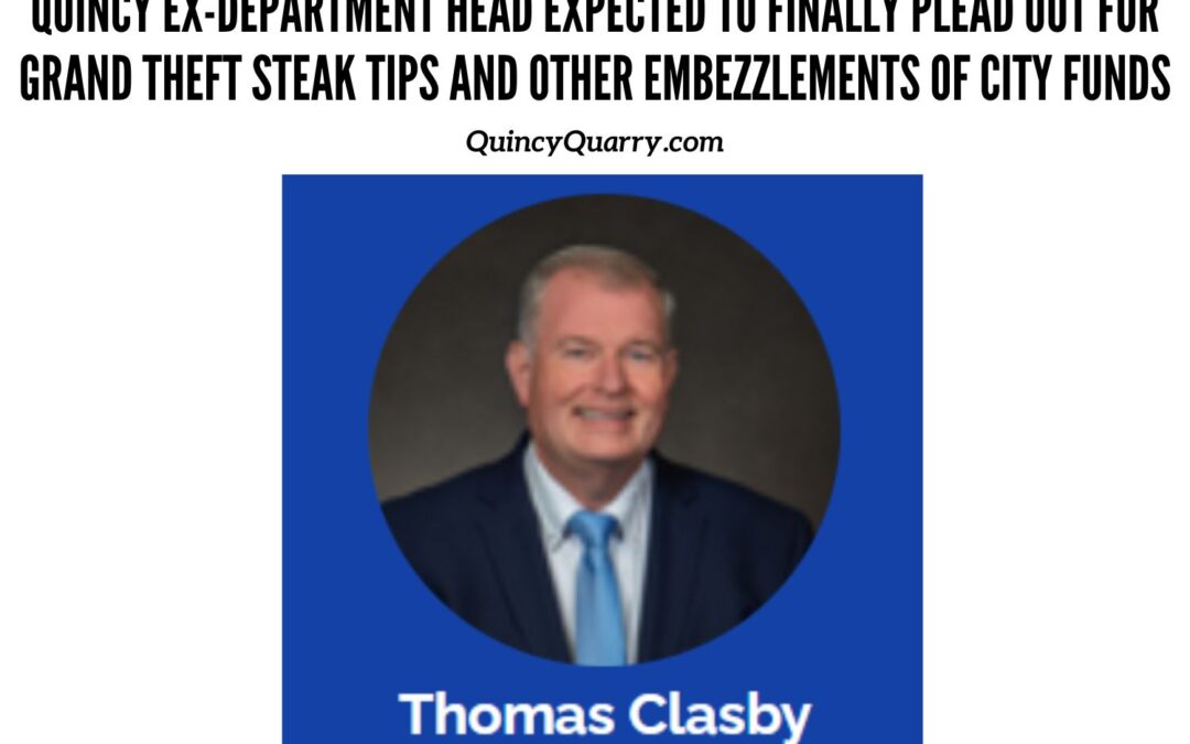 Rumbling of a pleading out notwithstanding, In the wake of former City of Quincy Director of Senior Services Tom “Steak Tips” Clasby opting to not plead out last October as was expected by her honor on charges of embezzling roughly $150,000 in city funds in spite of apparently ironclad evidences, Quincy Quarry News is not discounting the possibility that Steak Tips might again chicken out given a likely severe case of Carcerophobia.