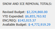 Through this past Friday, total snow clearing spending booked so far this winter is but a couple thousand short of $7 million all in and $4,772,919.29 over budget.